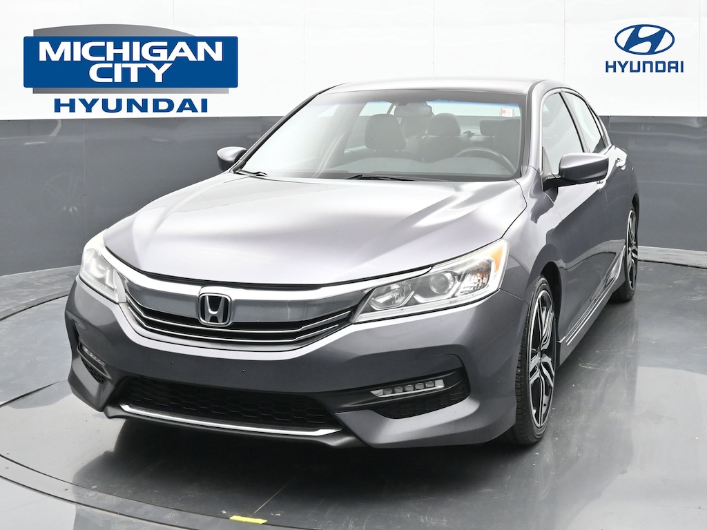 Elevate your daily drive with the 2017 Honda Accord Sport, now available at Michigan City Hyundai. This sporty yet practical sedan blends athletic performance, refined style, and everyday capability all with Hondas reputation for long-term reliability. Ideal for commuting in Chicago, weekend drives, or daily errands across Northwest Indiana.